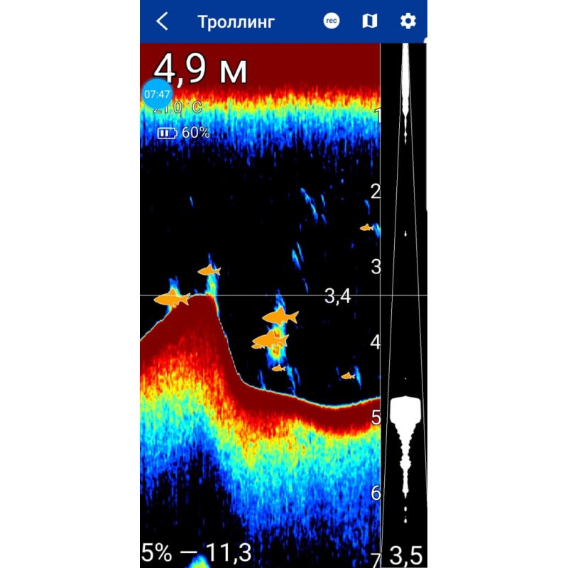 Индикация рыбы. Определение размера рыбы и глубины ее нахождения.