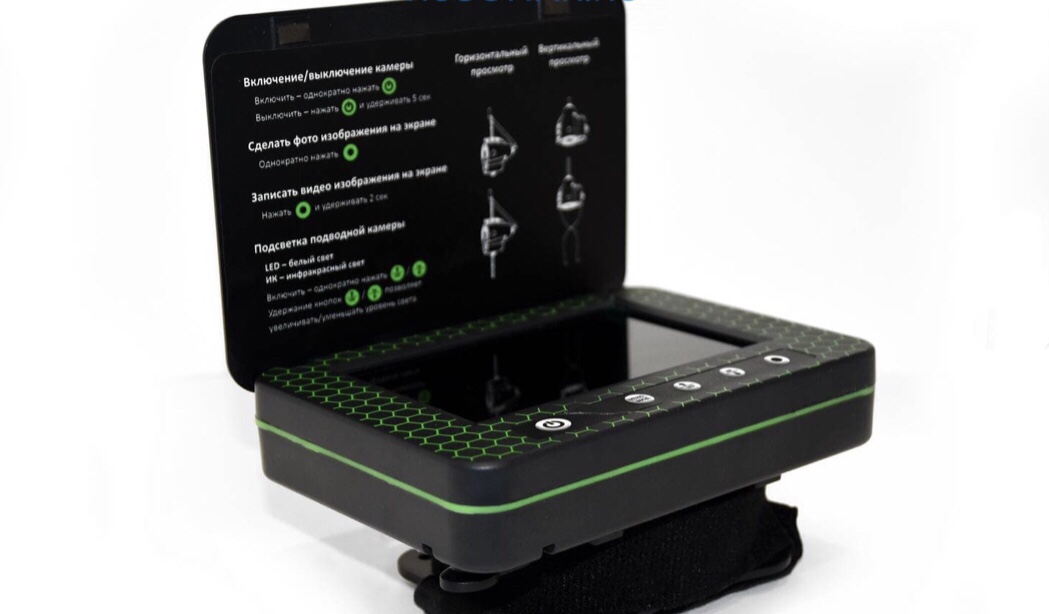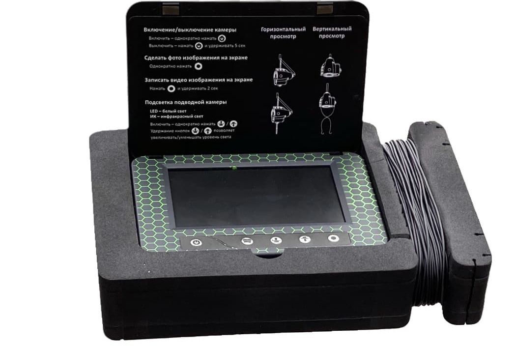 - переносной 5-дюймовый цветной TFT монитор с высоким разрешением 960х480 показывает четкую и яркую картинку даже на глубине 10-15 м при среднем уровне прозрачности воды;