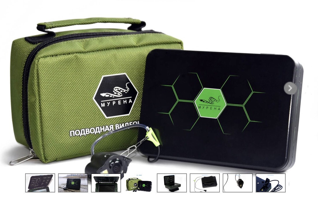 Камера МУРЕНА в базовой комплектации оснащена всем необходимым для скорейшего начала использования: камера, переносной монитор, сумка-чехол, SD-карта на 8 Гб с адаптером, фиксатор монитора на удочку, фиксатор монитора на руку.