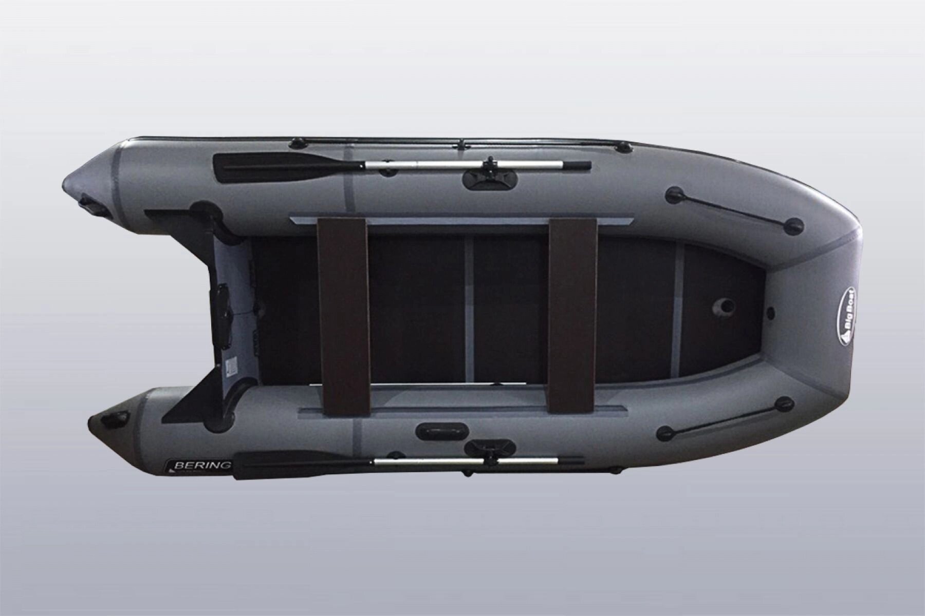 Каждая лодка укомплектована удобными и практичными лавками, которые свободно можно перемещать вдоль борта лодки. В стандартную комплектацию лодки входит пол-книжка, но также за отдельную плату возможен вариант пайольного пола, разработанного специально для серии лодок Bering. Также в стандартную комплектацию входят весла длиной 1,6 м, которые в свою очередь можно заменить на разборные весла длиной 2 м