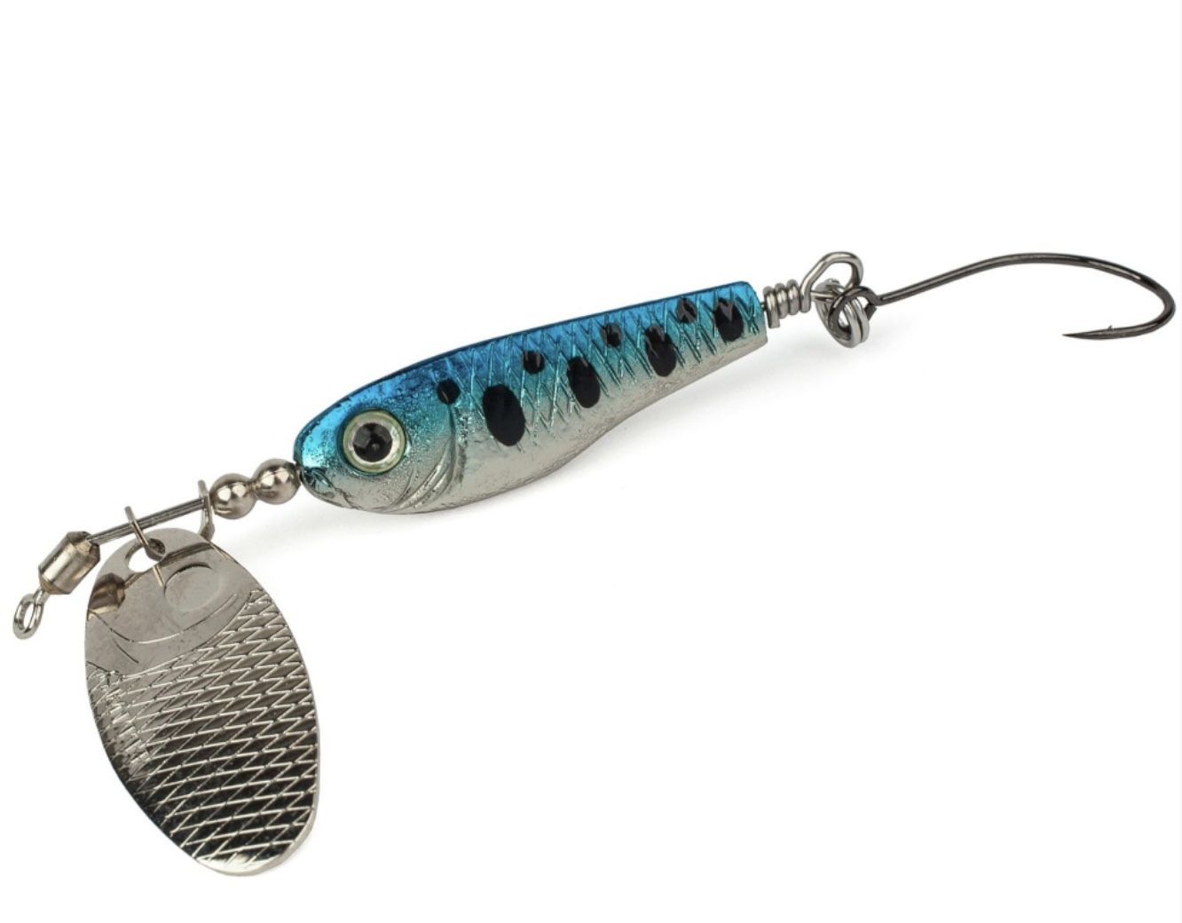 вертушки Niakis предназначены для форелевой рыбалки на ручьях и малых реках. Потому эксперты Smith наделили блесну легким чуть вытянутым овальным лепестком. Он начинает вращаться с первой потяжки и не сбивается на струе. Рифленая поверхность создает множество бликов. Приманка выглядит очень реалистично, благодаря дизайну сердечника. Он копирует маленькую рыбку с живыми глазками и рельефными деталями. Асимметричная конструкция смещает центр тяжести, чтобы стабилизировать блесну и улучшить ее кастинговые показатели. Представители Smith подчеркивают, что Niakis имеют минимальный риск перекручивания лески. Продуманное крепление, встроенный вертлюжок, выверенные пропорции - все служит для этой цели. Компактные вертушки оборудованы одинарником с бородкой для надежного удержания клюнувшей рыбы. С такой приманкой можно поймать и капризную форель, и осторожного голавля или жереха, а также язя, окуня и мелкую щучку.