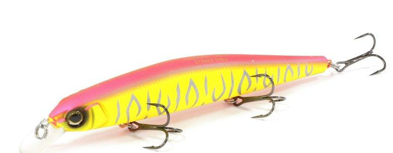 Удачной новинкой 2014 года от компании Strike Pro стал воблер типа minnow с нейтральной плавучестью Inquisitor 110SP. Приманки данной серии оснащены магнитной системой для дальнего заброса. Минноу имеет небольшую довольно узкую лопатку, расположенную под углом примерно тридцать градусов. Данная приманка оснащена крючками Owner. На равномерной проводке игра мягкая, не нагружающая снасть, при этом отчетливо видны осевые довороты корпуса. При проводке стоп-энд-гоу на каждой паузе приманка успевает красиво помахать боками. Данное семейство отлично подходит для твичинговых проводок, при этом эти воблеры очень четко удерживаются на заданной глубине. Подходят для ловли большинства хищных видов рыб.