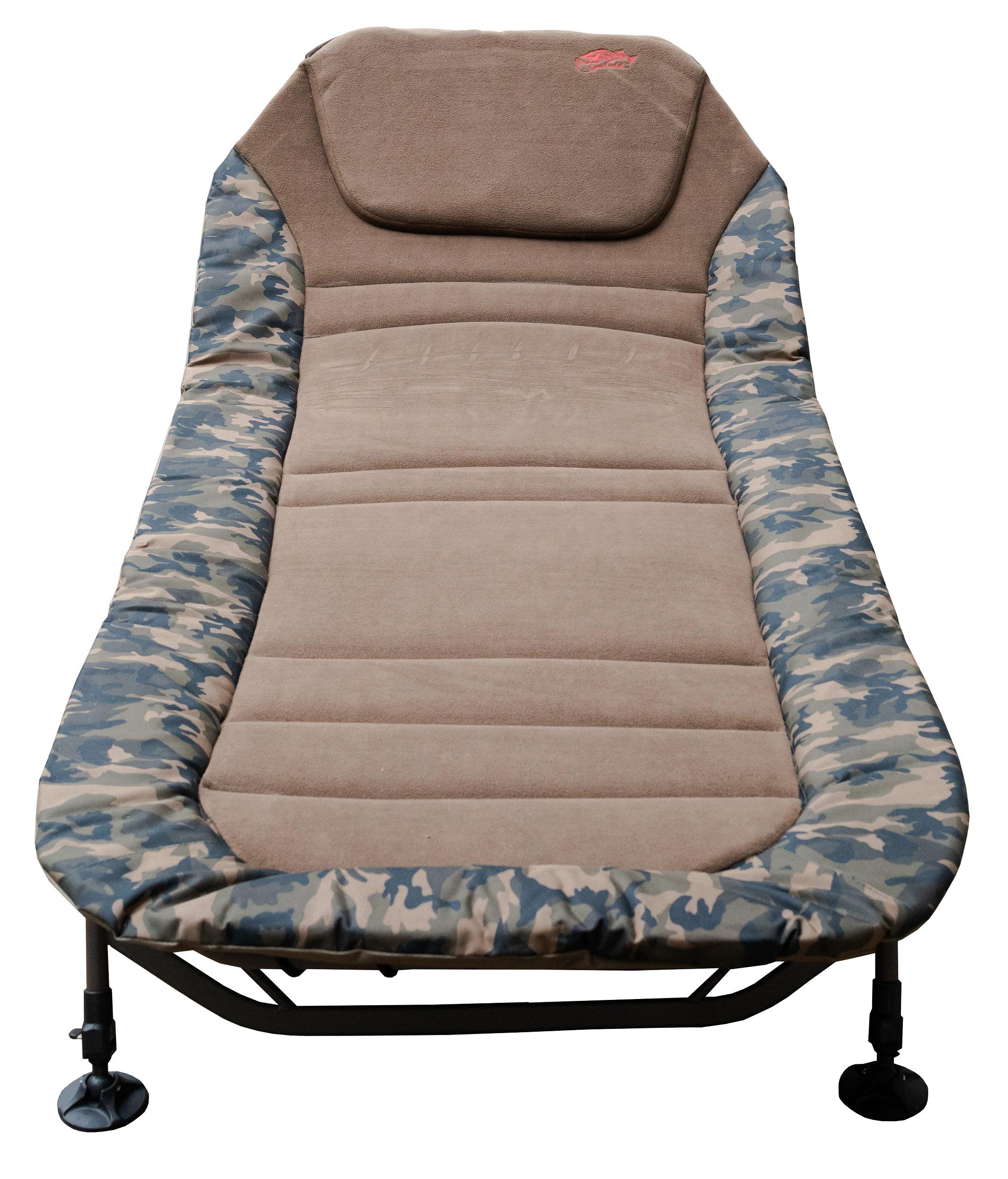 Заказал раскладушку Tramp Wide Camo TRF-070 — доволен. Более удобной лежанки для поездок на рыбалку и придумать невозможно. Сама по себе раскладушка довольно компактно складывается, без проблем ложиться в багажник машины, а в разложенном состоянии это удобное полноценное спальное место.