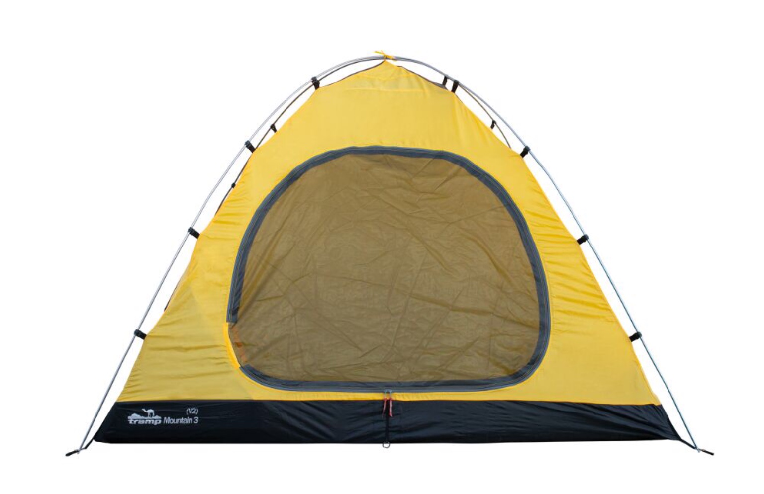 TRAMP MOUNTAIN 2 (V2), двухместная палатка для использования в различных, в том числе и сложных, погодных условиях. Практичность и комфорт для любителей путешествий и отдыха на природе обеспечивает продуманная конструкция палатки и материал, используемый для внешнего и внутреннего покрытия. Форма конструкции и внешнее покрытие из полиэстера обеспечивают надёжную защиту от проникновения ветра и влаги. Дополнительная пропитка водоотталкивающим составов, устойчивым к смыванию, ещё больше повышает защиту внутренней части. Швы проклеены термоусадочной лентой. Дышащая поверхность внутреннего полотна палатки препятствует образованию и скапливанию на стенках и вещах влажного конденсата. Дополнительный комфорт создаётся за счёт вентиляционных окон, и возможности держать двери приоткрытыми. Двери и окна имеют дополнительную защиту от проникновения насекомых (противомоскитная сетка).