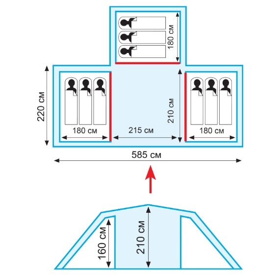 - Двухслойная кемпинговая палатка с одним входом, большим тамбуром