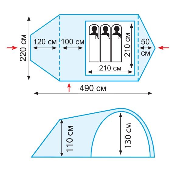 Внутренняя палатка:100% дышащий полиэстер