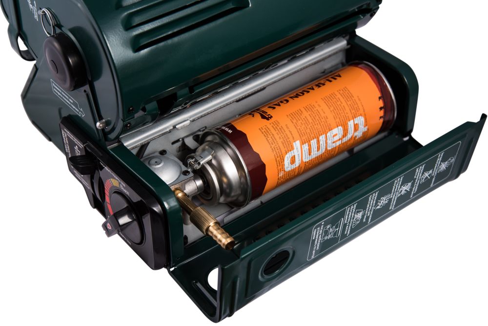 Обогреватель газовый с керамическим нагревательным элементом. Может использоваться в качестве плиты. Мощность - 1.3кВт, расход газа - 100г/ч