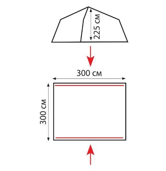 - Размер шатра 3 на 3 метра высота - 2.25 метра, что позволяет стоять высокому взрослому человеку в полный рост не сгибаясь.
