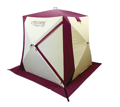 Утепленная палатка для зимней рыбалки, рассчитана на одного человека. Имеет форму куба. Площадь позволяет расположить внутри вещи.