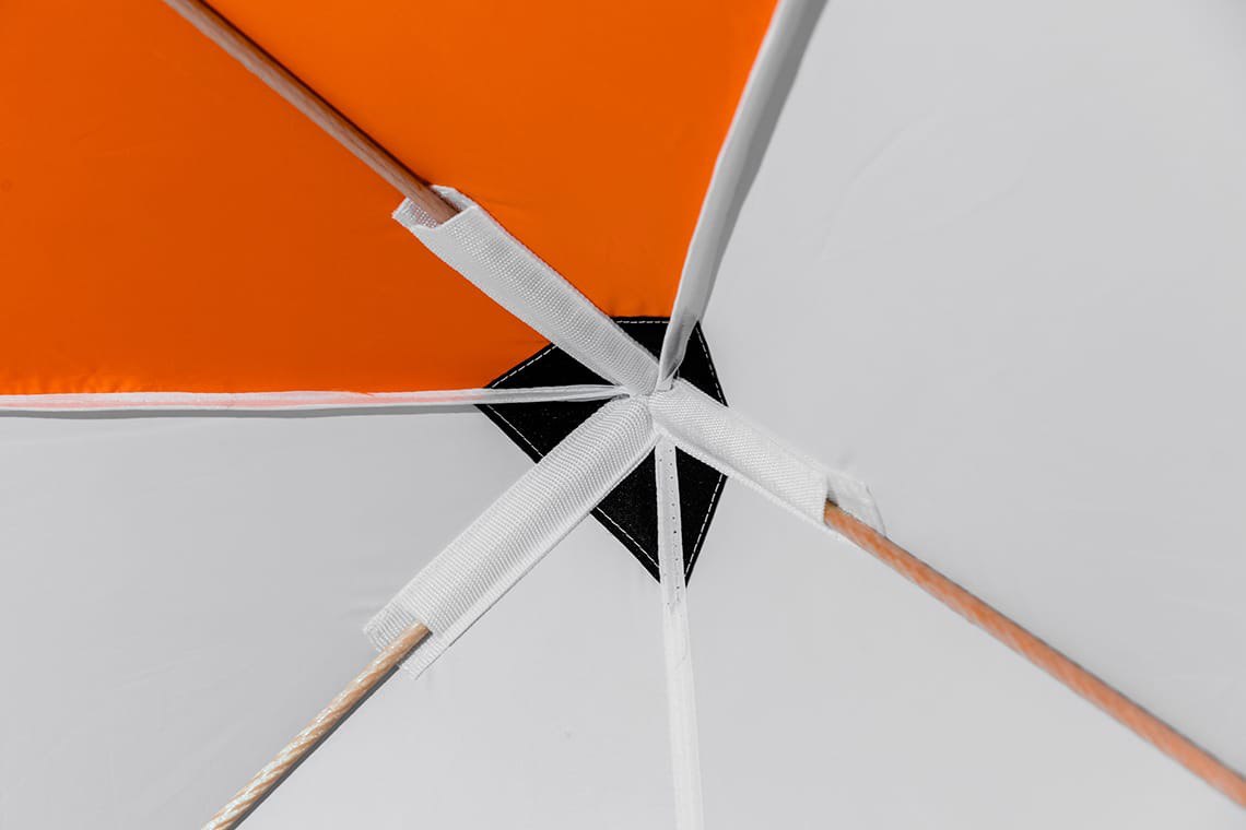 При изготовлении тента этой зимней палатки использована ткань Oxford 240 PU. Тент обладает водоотталкивающими свойствами, удерживает тепло, а белый цвет обеспечивает прекрасную светопроницаемость, что обеспечивает комфортные условия для проведения зимней рыбалки и не даёт глазам уставать.